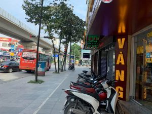 – Nhà mặt phố Quang Trung ngay sát đèn đỏ vỉa hè rộng mênh mông kinh doanh bất chấp mọi mặt hàng.